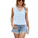 Feminine design: This stylish women's top features a V-neck and sleeveless design, exuding feminine charm and fashion sense. It is a perfect combination of elegance and trendiness.