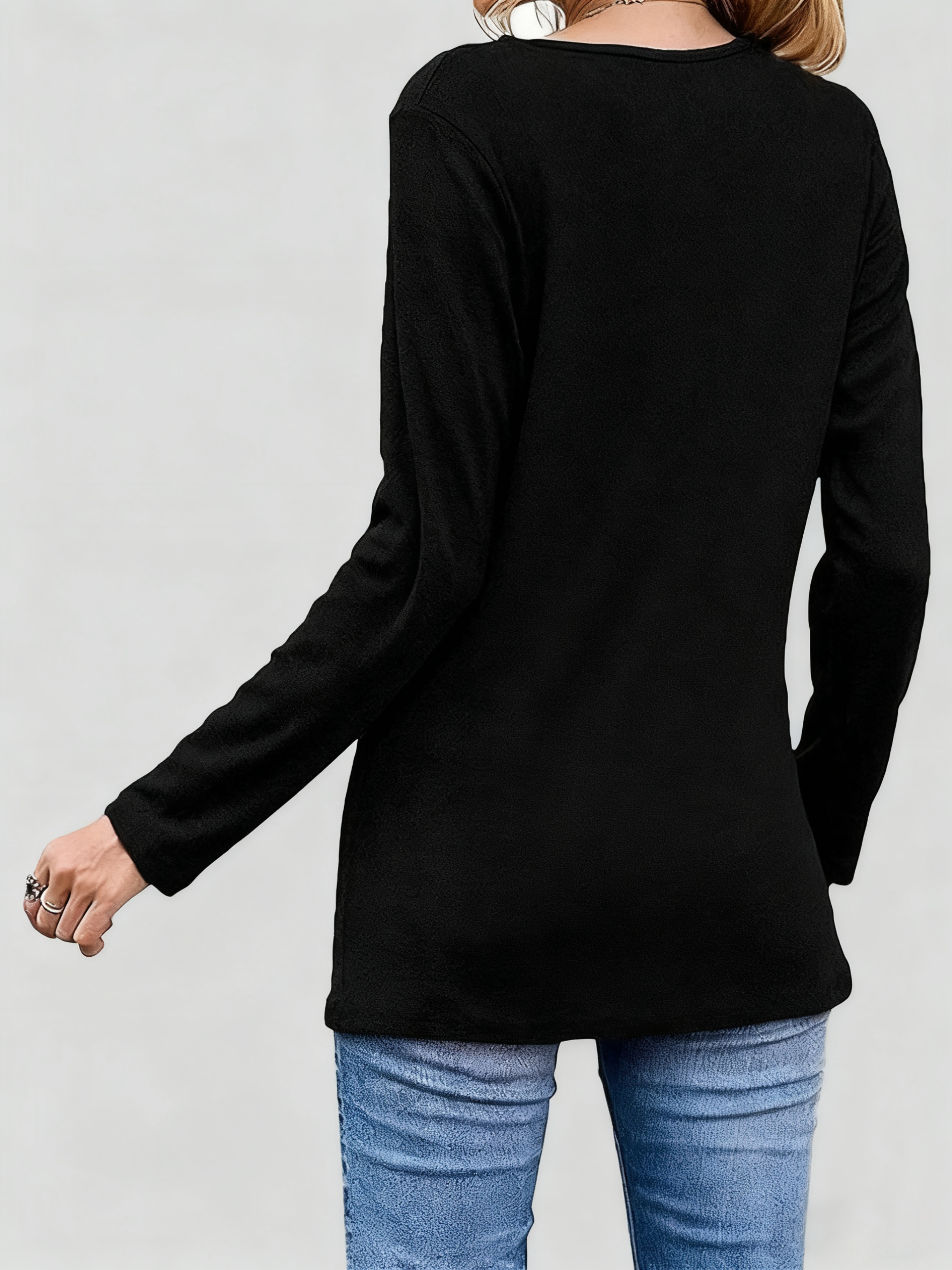 Design: Casual T-shirt, solid color, round neck, short sleeves, loose fit. Long-sleeved simple T-shirt, irregular hem with buttons, fashionable and cute.