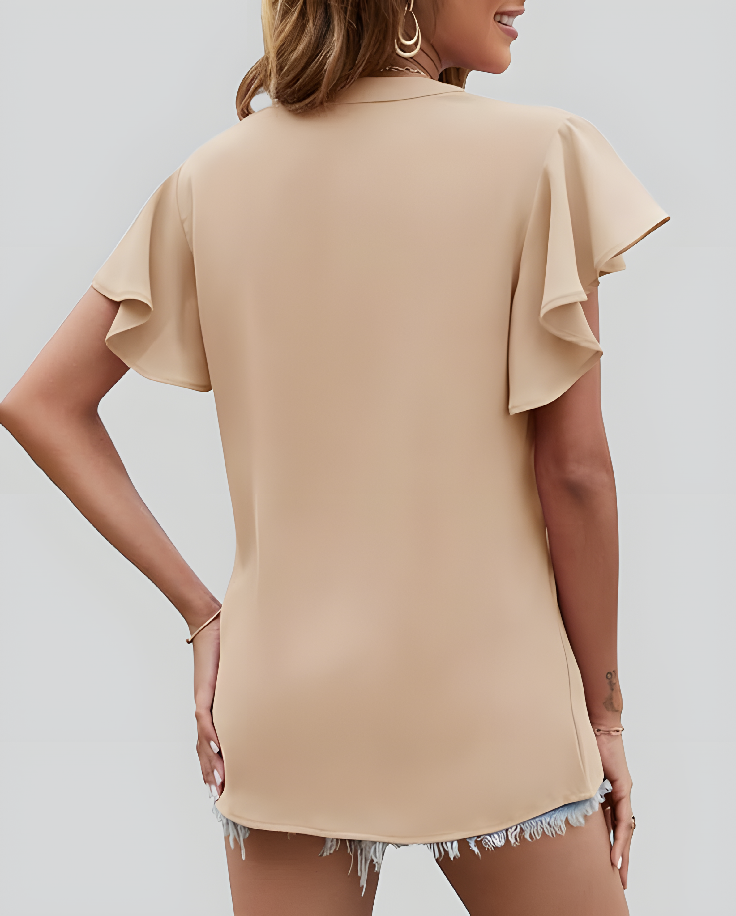 Design: Ruffle sleeve design, perfect for more professional occasions or elegant dinners. Sweet pleated details on the shoulders create a sophisticated look.